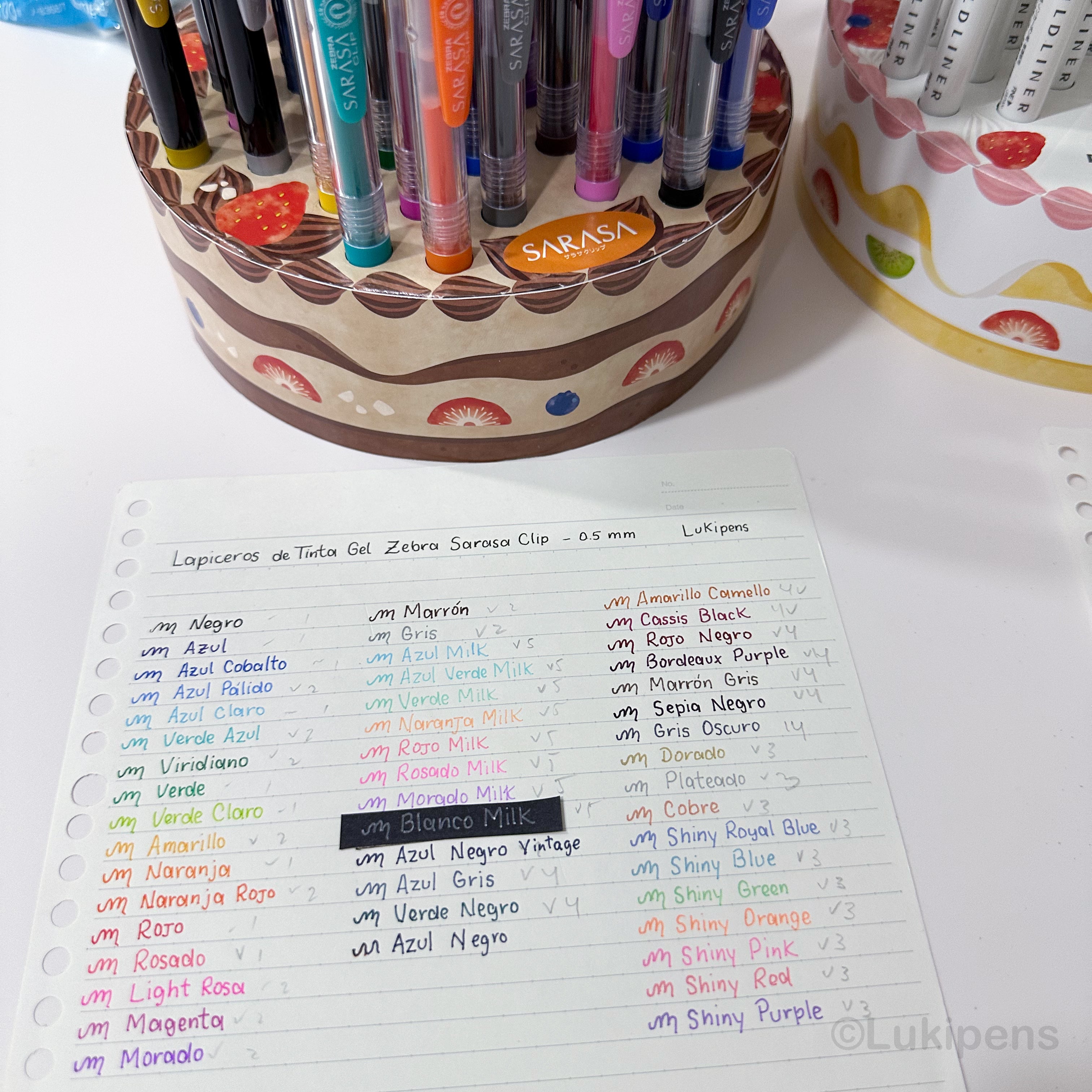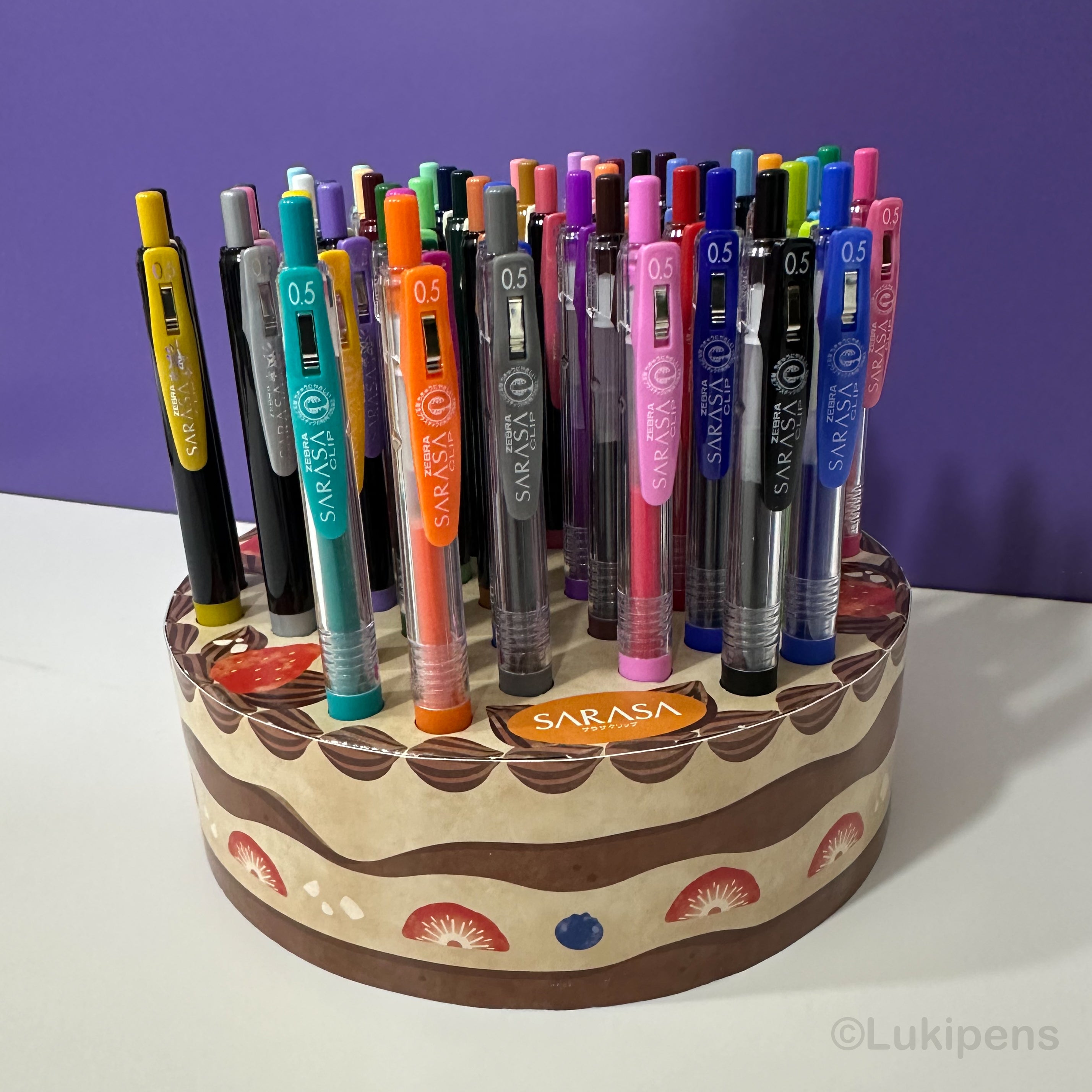 Un juego de bonitos organizador tipo pastel con los Sarasa Clip en todos los colores.